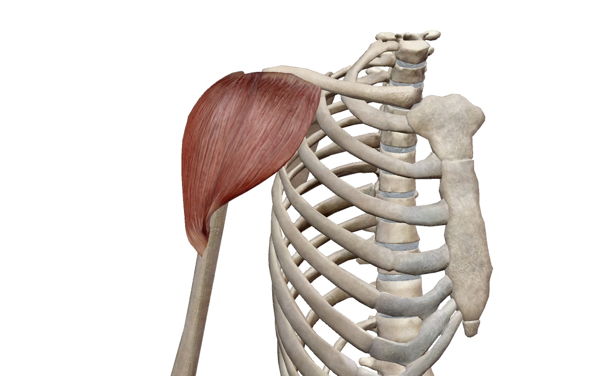 腕を持ち上げたり支えたりする筋肉、三角筋をコントロールしています。